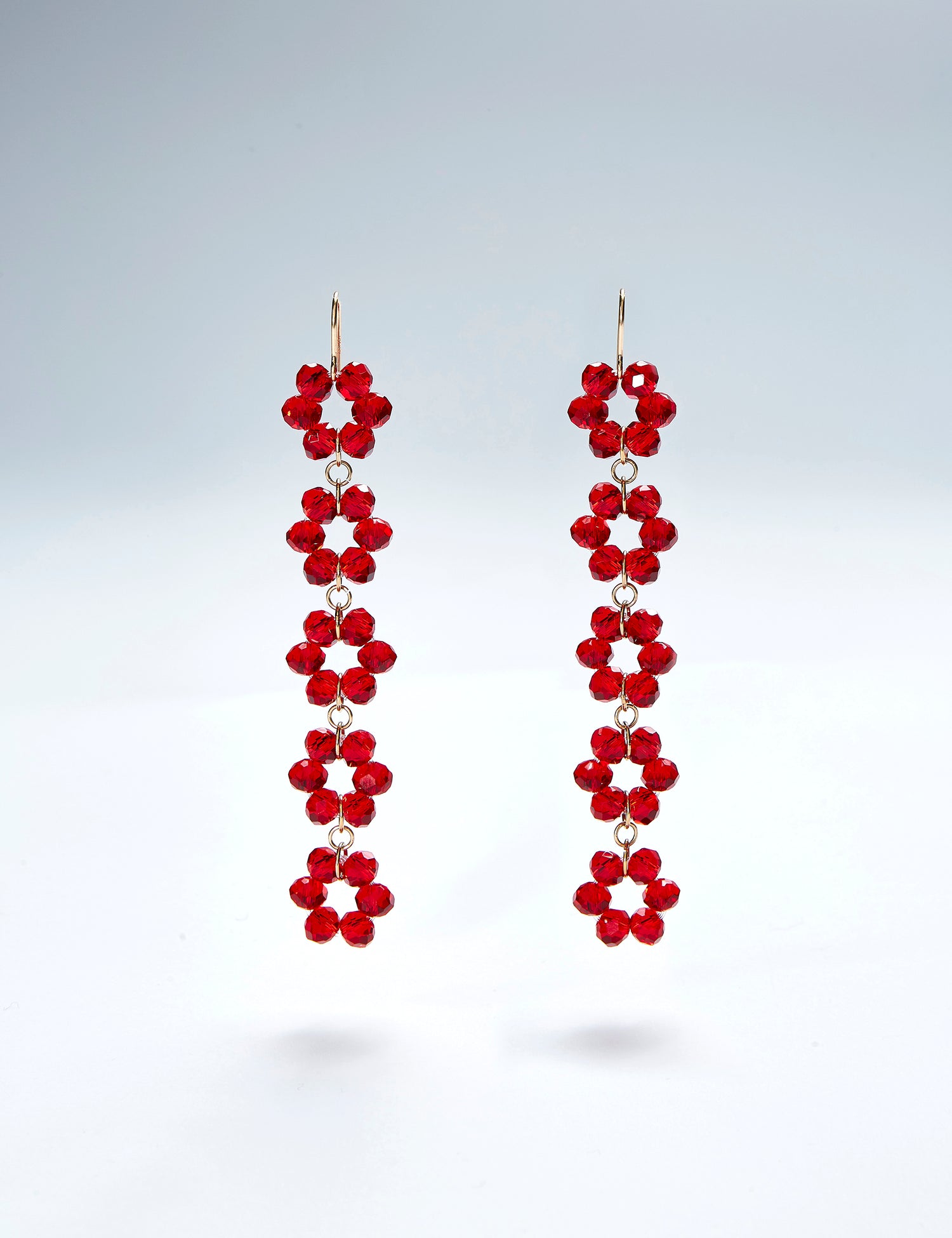Our dangly Daisy Chain Earrings in Ruby Red are elegant and timeless