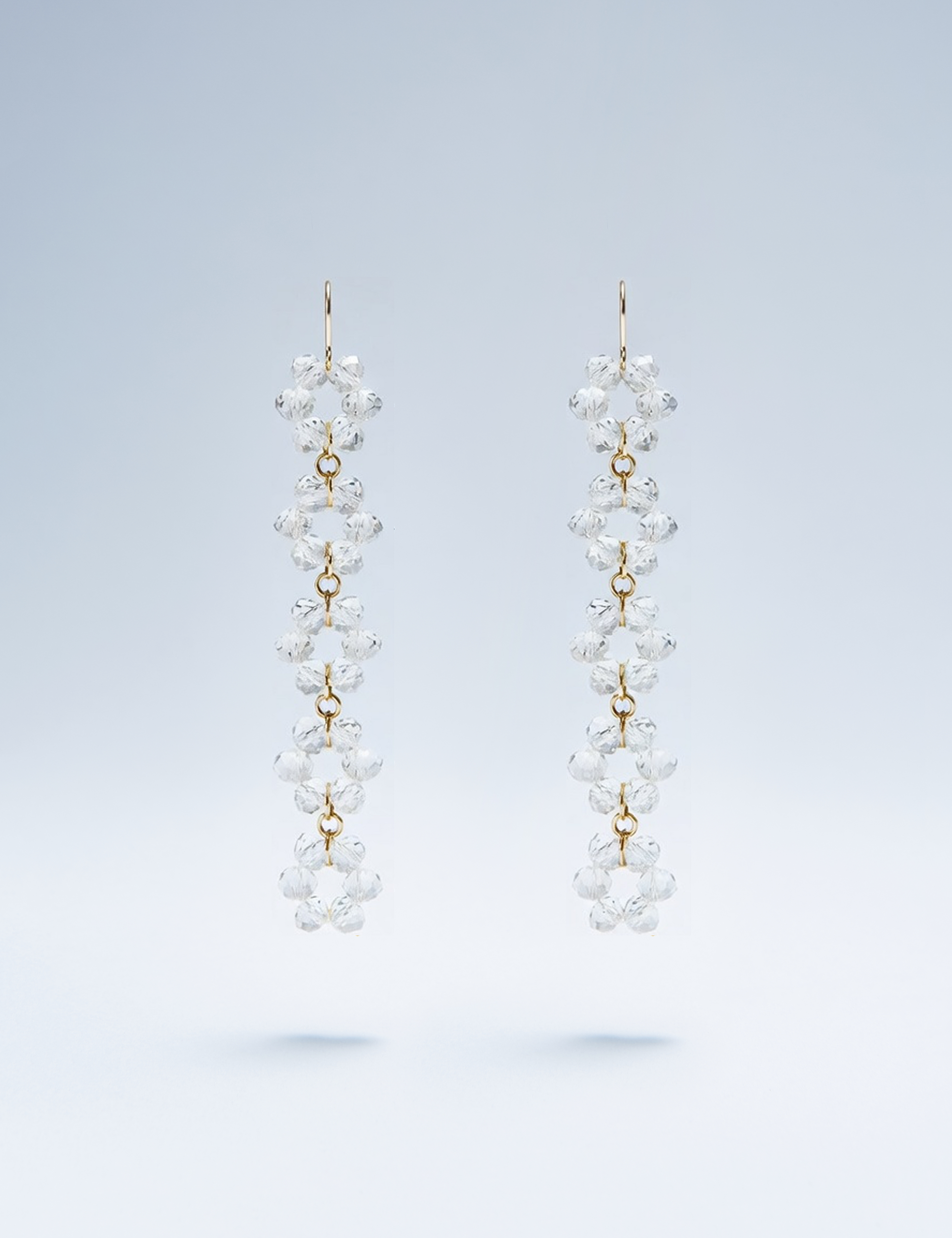 Sparkling and playful, the Daisy Chain Earrings bring the perfect finishing touch to your wedding day and beyond. Delicate flower like chains of faceted clear glass beads sparkle with every movement, paired with gold vermeil findings. Their light, swingy motion makes them ideal party earrings, perfect for dancing and celebrating late into the night. From walking down the aisle to dancing all night long, they add joyful elegance to your bridal look.